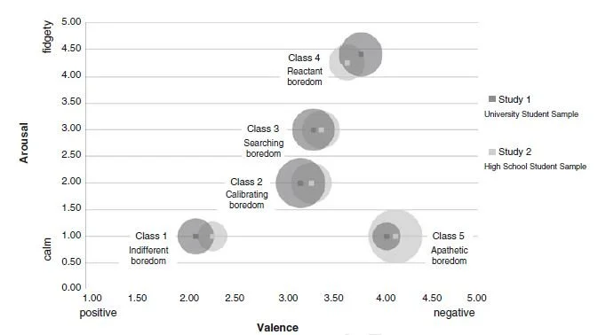 Goetz, T., Frenzel, A. C., Hall, N. C., Nett, U. Pekrun, R. & Lipnevich, A. (2013, November). Types of boredom: An experience sampling approach. Motivation and Emotion. DOI: 10.1007/s11031-013-9385-y